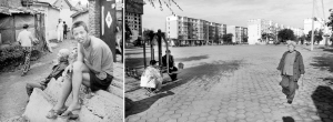 左图为翻拍的抚顺北厚社区棚改前的老照片;右图为如今北厚社区内居民休闲锻炼的广场(拼版照片,9月24日摄)。新华社发