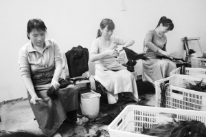 项城市官会镇围绕发艺做足“头上”工夫,全镇从事发艺加工业的农户600余户,人员近10000余人,产品畅销欧美等10多个国家和地区。图为该镇企业职工在加工真人发艺。 (张永久 摄)