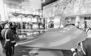 ▲新疆获赠天安门广场国旗 9月30日,武警新疆总队国旗班旗手展示获赠的天安门广场国旗。当日,新疆获赠一面北京天安门广场使用过的国旗。各界群众、武警官兵、大中小学学生200余人参加在乌鲁木齐举行的国旗赠送仪式。新疆获赠的这面国旗编号为1217,于2011年10月29日至30日在天安门广场国旗杆悬挂使用。新华社记者 王菲 摄