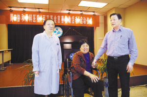 周口协和骨科医院开展的百万基金慈善救助活动定于2013年10月1日到2014年10月1日,救助人数约50人,救助资金达100万元。患者到院报名须带当地政府开具的贫困户证明信及农合医保证、身份证,由医院审核后按顺序进行手术治疗。图为受助人李红英(中)拉着该院负责人的手流下激动的眼泪。 记者 刘艳霞 摄