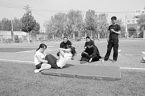 近日,周口市中级人民法院组织全市法院司法警察开展调警演练及体能达标测试。图为女警仰卧起坐考核场景。(徐林 张魁彬 李书永 摄)