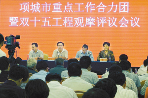 本报讯 (记者 杨光林 文/图) 9月30日晚,项城市重点工作合力团暨双十五工程观摩评议会议在莲花迎宾馆召开(如图二)。会议的主要任务是对五个重点工作合力团9月份工作开展情况以及双十五工程观摩情况进行现场评议打分。