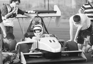 10月9日,湖南大学车队的大学生在调试自制的赛车。2013年第四届中国大学生方程式汽车大赛将于10月16至19日在湖北省襄阳襄阳市进行总决赛,参赛赛车大多由在校大学生们设计、制造、调试。新华社发