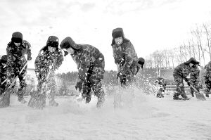 10月11日,在黑龙江大兴安岭,武警大兴安岭地区森林支队的战士在清扫积雪。据中央气象台监测,近日,冷空气入侵我国东北、华北等地,黑龙江和内蒙古局部地区迎来今年首场降雪。 新华社发