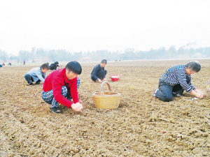 昨日,项城市范集镇“农业钟点工”田爱香和工友们正在地里忙着种大蒜。随着农业土地流转和种粮大户的日益增多,该镇积极组织农村剩余劳动力收获农作物、田间管理等,既解决了农忙时劳动力不均衡的问题,又开辟了新的增收渠道。(朱宁宁 摄)