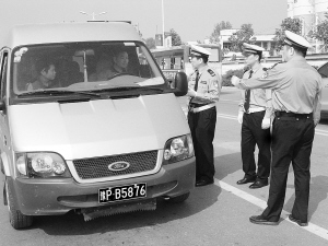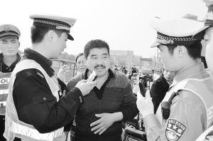 入秋以来,市交警支队不断加大对违章车辆及无牌、无证,套牌、套证和酒后驾驶的查处力度,确保了我市交通秩序平稳。①:金海路交警大队在检查过往车辆证件。②:文昌交警大队对疑似酒驾司机进行酒精测试。③:淮阳县交警大队设卡检查。