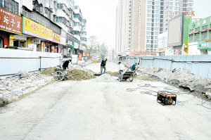 为保证工程进度,同时做到不影响附近商户经营,施工方采取昼夜轮班施工的方法,加班加点赶进度。同时,为方便市民通行,施工方采取先支路后主道的办法推进工程。