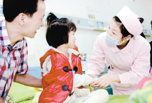 10月28日,福州儿童医院护士在为患者服务。近年来,福州儿童医院在医德医风建设中,采取与患者签订《行风建设医患协议书》、与医生签订《拒收“红包”、回扣承诺书》、与药品器械供应商签订《反商业贿赂协议书》等措施,杜绝医务人员不廉洁行为,进一步改善医患关系。(新华社发)