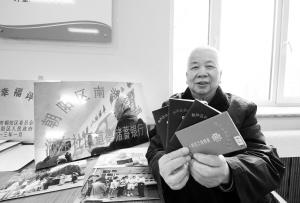 长春道德银行行长张文均在展示他的道德银行“储蓄卡”。