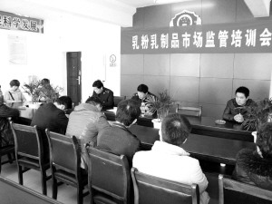 为提高乳制品经销商合法经营意识,近日,项城市工商局对辖区乳制品经销商进行培训,重点解决经销商索证索票、进销货台账建立不规范等问题。(王瑾 李辉 摄)