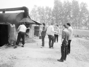 10月24日,郑集乡联合县环保局等有关单位组织20余名执法人员,采取强硬措施,取缔该乡指挥村的一家非法小炼油厂。图为捣毁现场。(侯俊豫 其明 摄)