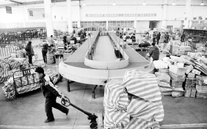 国家邮政局:“双11”全天快递企业处理快件超过6000万 11月12日,在辽宁邮政速递物流集散中心,邮政工作人员在分拣包裹。国家邮政局12日公布的信息显示,11月11日全天以淘宝网为代表的主要网商共产生快递订单约1.8亿件,各快递企业共处理6000多万件快件,是2012年“双11”最高峰3500万件的1.7倍。 新华社记者 杨青 摄