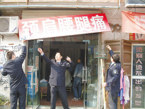 近日,太康县卫生局、卫生监督所在全县范围开展打击黑诊所、美容院行医、承包科室等非法行医行为,力求做到标本兼治,进一步规范医疗秩序,保障群众安全就医。图为该县卫生执法人员依法拆除非法行医标识。师海滨 摄