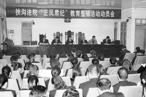 为集中解决人民群众反映强烈的纪律作风问题,进一步提升人民法院的形象,扶沟县人民法院决定组织开展为期两个月的“正风肃纪”教育整顿活动。图为11月9日上午,该院召开“正风肃纪”教育整顿活动动员会。(记者 王泉林 通讯员 邹鹏举 郭钰鑫 摄)