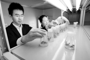 中学校园里的“生物实践园” 11月18日,北京第24中学学生在“大同生物实践基地”实验室里做育苗实验。当日,北京第24中学“大同生物实践基地”正式投入使用。新华社发