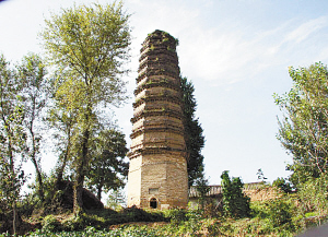 最早的八角形砖塔:中国古塔形制多种,以往认为八角形砖塔出现在宋代以后,然而屹立于登封市嵩山之麓的净藏禅师塔,为八角形砖塔,时代却为盛唐时期,可谓中国之最。净藏禅师塔位于登封市西北6公里会善寺山门的西坡之上,单层单檐八角形砖筑,建于唐天宝五年(746年)。(李华)