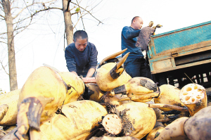 昨日,商水县固墙镇农民把雪藕运到岸边销售。该县积极引导农民利用坑塘发展雪藕种植,以提高土地利用率和增加农民收入。(吕耀光 王新建 摄)