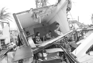 灾后生活 11月21日,在菲律宾台风重灾区莱特省塔克洛班市,几个孩子在一个在台风中被毁坏的房屋浴室内做游戏。本栏文图均据新华社电