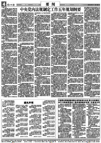 6.完善党内基层民主制度。研究制定《中国共产党党务公开条例》,健全党内情况通报制度,增强党内生活透明度。扩大党内基层民主,建立健全党内事务听证咨询制度,完善党员定期评议基层党组织领导班子制度,建立健全党员旁听基层党委会议、党代会代表列席同级党委有关会议等制度。
