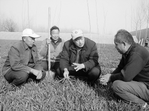 扶沟县练寺镇利用当前晴好天气,积极组织技术人员深入全镇田间地头,指导农户科学进行小麦各项管理,及时进行病虫害和田间杂草的管理,为明年的小麦丰收打下了良好的基础。(陈奎 摄)