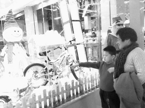 昨日,在市区七一路一大型商场内,市民被漂亮的“圣诞小屋”所吸引。圣诞节将至,很多商家积极营造圣诞氛围,为“圣诞商战”做好准备。 记者 王映 摄