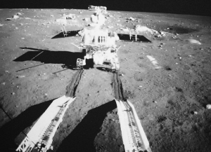 15日4时35分,月球车驶上月球,在月面印出一道深深的痕迹。