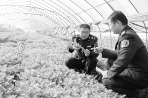 昨日,质量标准化管理人员在鹿邑益群无公害蔬菜专业合作社的西芹标准化种植园,查看西芹幼苗长势。近年来,鹿邑无公害蔬菜种植专业合作社蓬勃兴起,鹿邑县质监局主动深入合作社种植基地,开展农业标准化服务,先后建起了12个农业标准化无公害蔬菜种植园,提升了蔬菜品质,促进了农民增收。(记者 杜少华 通讯员 杨新才 摄)