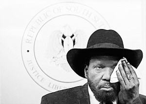12月18日,南苏丹总统基尔在首都朱巴出席新闻发布会时擦汗。美国国务院发言人玛丽·哈夫18日说,美国已从南苏丹撤出3批美方人员,并与南苏丹总统基尔讨论了该国暴力行动持续不断的问题。自基尔今年7月撤销副总统马沙尔的职务后,执政的苏丹人民解放运动内部两个主要派别之间分歧日益严重。南苏丹政府12月16日宣布,15日晚至16日在首都朱巴发生的武装冲突是一起政变图谋,其幕后策划者是马沙尔,政变图谋已遭挫败。目前,南苏丹局势仍未平息。新华社发