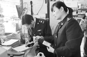 项城市工商局切实加强流通环节食品质量监管,认真落实索证索票、购销货台账建立等制度,确保群众吃上放心食品。图为工商执法人员在检查食品市场。(王瑾 李辉 摄)