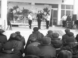 12月24日,淮阳县福利院院民们在观看一艺术团编排的“十八届三中全会精神”快板节目表演。自党的十八届三中全会精神宣讲活动启动以来,该县创新形式,将党的十八届三中全会有关精神编排成戏曲、快板等群众喜闻乐见的节目,深入企业、社区、田间地头进行宣传,使三中全会精神和党的惠农政策家喻户晓。