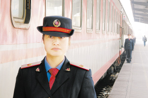 周口老火车站内,乘务人员站好最后一班岗。(记者 沈湛 摄)