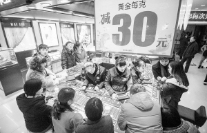 金价岁末暴跌 12月24日,众多消费者在湖南长沙一家商场选购黄金首饰。临近岁末,黄金迎来新一轮下跌趋势。新华社记者 白禹 摄