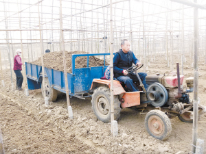 扶沟县积极调整农业种植结构,今年冬季共建400亩以上的蔬菜园区12个,面积达到6000亩。图为农民正在备肥冬耕。(谷志方 摄 )