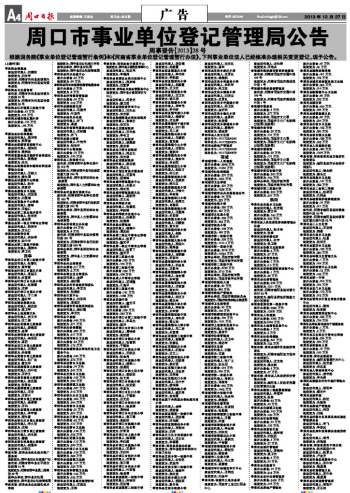 周口市事业单位登记管理局公告