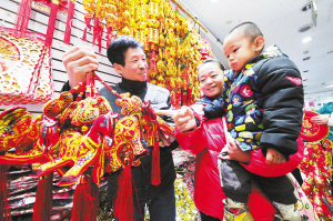 新年饰品热销 1月1日,在宁夏银川一家小商品市场内,顾客在选购新年装饰品,当日是2014年元旦。新华社记者 彭昭之 摄