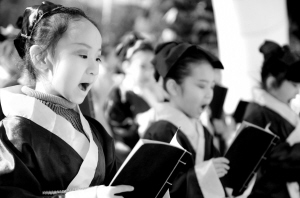 经典诵读贺新年 1月2日,合肥市安居苑小学学生在吟诵《三字经》。当日,合肥市安居苑小学开展“拥抱2014 经典诵读”活动,通过引导孩子们诵读经典著作,培养他们对传统文化的兴趣。新华社记者 刘军喜 摄