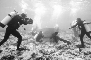 考古专家在沉船遗址工作(2010年4月摄)。新华社发