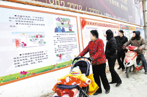 近日,位于川汇区小桥办事处建东社区的城市管理文化墙建成,吸引许多社区群众驻足观看。原来社区临街有一堵70多米的灰色围墙,经过粉刷、修补后,绘上了生动活泼的卡通图案,依次呈现出爱护环境、社区创建等为主题的、通俗易懂的文明图画。(记者 王映摄)