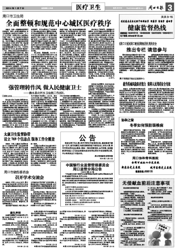 精心组织,周密部署。2013年11月13日,市卫生局召开周口市中心城区整顿和规范医疗秩序动员大会,川汇区、开发区、东新区、周口港区卫生局局长、主管局长以及中心城区各级各类医院院长、医政科长、控感办主任120余人参加会议。与此同时,结合中心城区医疗市场实际,科学整合卫生监督资源,由市卫生局牵头,其他4个区卫生局配合,成立4个督查组,对中心城区41家各级医院和公共卫生机构进行集中检查。其他基层医疗机构由市卫生监督局组成7个监督检查组,按照区域划分,实行分片监督,逐街逐户检查,整个检查由新闻媒体跟踪报道。市卫生局党组书记、局长郝宝良亲自动员、亲自部署、亲自深入执法一线,督促检查指导工作,确保了专项整治工作的顺利开展。