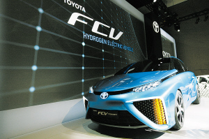 这是1月6日在美国拉斯韦加斯国际消费电子展媒体预展上拍摄的氢燃料电池概念车。当日,日本丰田公司展出了氢燃料电池汽车,并宣布将于明年在美国率先推出。 新华社记者 方喆 摄