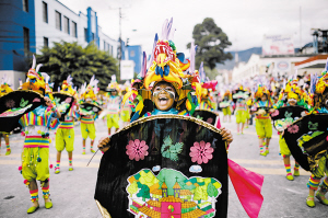 狂欢迎新年 1月6日,在哥伦比亚帕斯托,一名表演者参加“黑与白”狂欢节游行。每年新年之际,哥伦比亚帕斯托都会举行持续多日的“黑与白”狂欢节活动。这一狂欢节于2009年被联合国教科文组织列入人类非物质文化遗产。新华社发(帕斯摄)