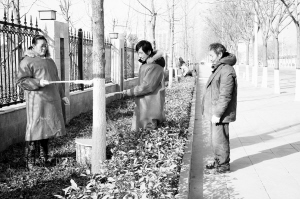 为抵御寒冷干燥天气,项城市组织技术人员对沿街绿化花木进行管护,确保了各类苗木安全越冬。图为工人正在进行冬季花木管护。
