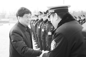 县委书记陈志伟慰问公安民警。(记者 杜少华 摄)
