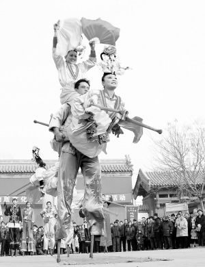 “非遗”展演迎新春 1月14日,河北沧州民间艺人在表演沧州市“非遗”项目沧县高跷。当日,河北省沧州市举办迎春节非物质文化遗产精品展演展示展览活动。来自7个县市区的国家级、省级非物质文化遗产项目竞相登场亮相,为当地群众和游客献上精彩的民俗文化演出。