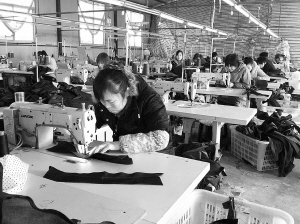 昨日,淮阳县葛店乡朱庄行政村一服装厂的员工正忙着赶制服装。近年来,该村在建设美丽乡村、改善人居环境的同时,积极兴办服装厂等企业,努力让群众的钱袋子鼓起来。(记者 侯俊豫 摄)