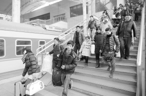 1月15日,旅客在郑州火车站走入站台准备乘车。记者从郑州铁路局获悉,2014春运期间,该局预计发送旅客1080万人次,同比增长5.3%,节前客流主要为学生流、探亲流和民工返程流,客流相对平缓;节后以民工流、学生返程流为主,客流高度叠加。 新华社记者 李安 摄