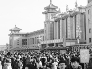 1月15日,北京火车站站前广场上人头攒动。 2014年春运从1月16日起至2月24日止,为期40天。据国家发改委初步预测,今年春运客运量将达到36.23亿人次,比上年增加2亿人次。新华社发