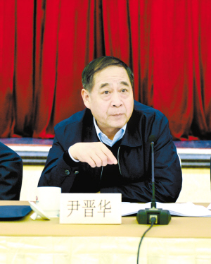在认真听取代表发言后,尹晋华作了发言。他充分肯定了去年我市经济社会发展取得的显著成绩,并表示完全赞成政府工作报告。