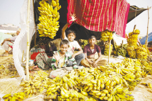 1月15日,商贩在印度西孟加拉邦乔伊代夫镇根杜里村卖香蕉。