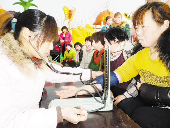 商水县舒庄乡医务人员正在免费为返乡农民工进行健康检查。1月18日,该乡组织6名医务人员为160多名返乡农民工检查身体。(乔连军 摄)